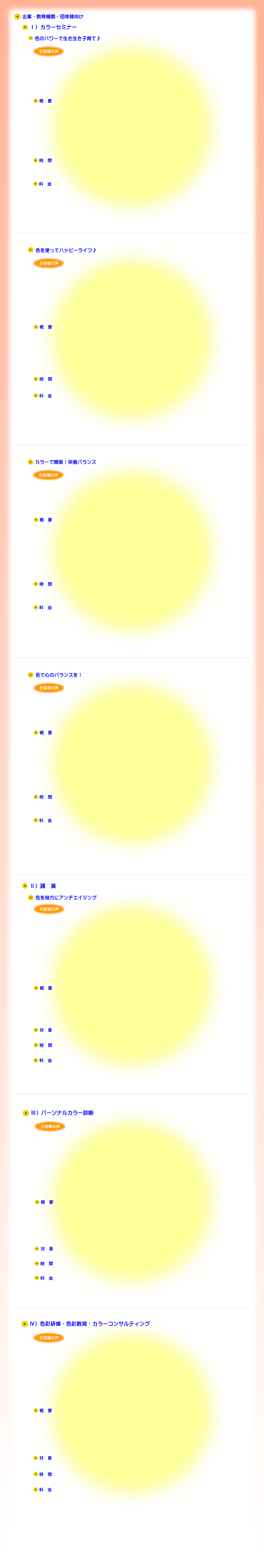 30分(※お子様向け食育・色育セミナーとして)〜60分 (応相談)