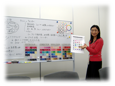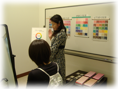4つの色のグループの中から、どのグループの色が似合うか診断し、服装・メイク等についてアドバイスさせていただきます。