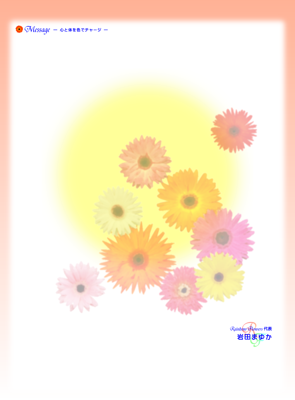 色の効果はこんなに絶大なのですから、私は皆様に是非この効果をお伝えして『心と体を色のエネルギーでチャージ』して