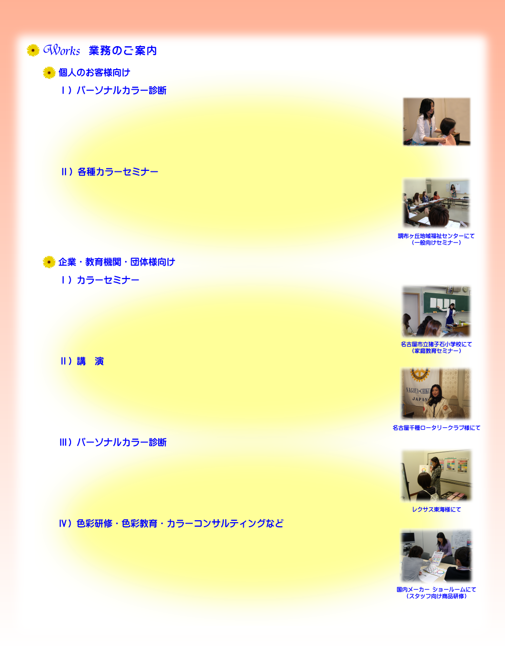 基礎知識の講義から、個別の商品・サービスについてカラーの